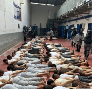 Ramallah, 7 september 2024, WAFA – Uitgelekte documenten van de Israëlische Megiddo gevangenis onthullen een afschuwelijk mishandelings- en misbruikincident tegen tientallen Palestijnse gevangenen, die vrijdagochtend werden geboeid en op de grond gegooid.