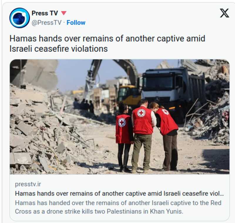 Eerder had de beweging ook al gemeld dat het Israëlische leger opzettelijk de berging en overbrenging van de stoffelijke resten van de gevangenen van het regime belemmerde, zoals overeengekomen in de overeenkomst, en sprak zij haar afkeuring uit over de “systematische obstructie” door Tel Aviv.